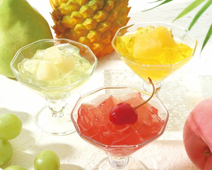 果実そのものの美味しさを存分に楽しめる、食べごたえのあるフルーツゼリーです。みずみずしいゼリーの中に大きめにカットした果肉を贅沢に閉じ込め、それぞれのフルーツが持つ酸味と甘みを引き立てた、爽やかな味わいに仕上げました。見た目にも涼やかで、夏の贈り物やデザートに最適です。