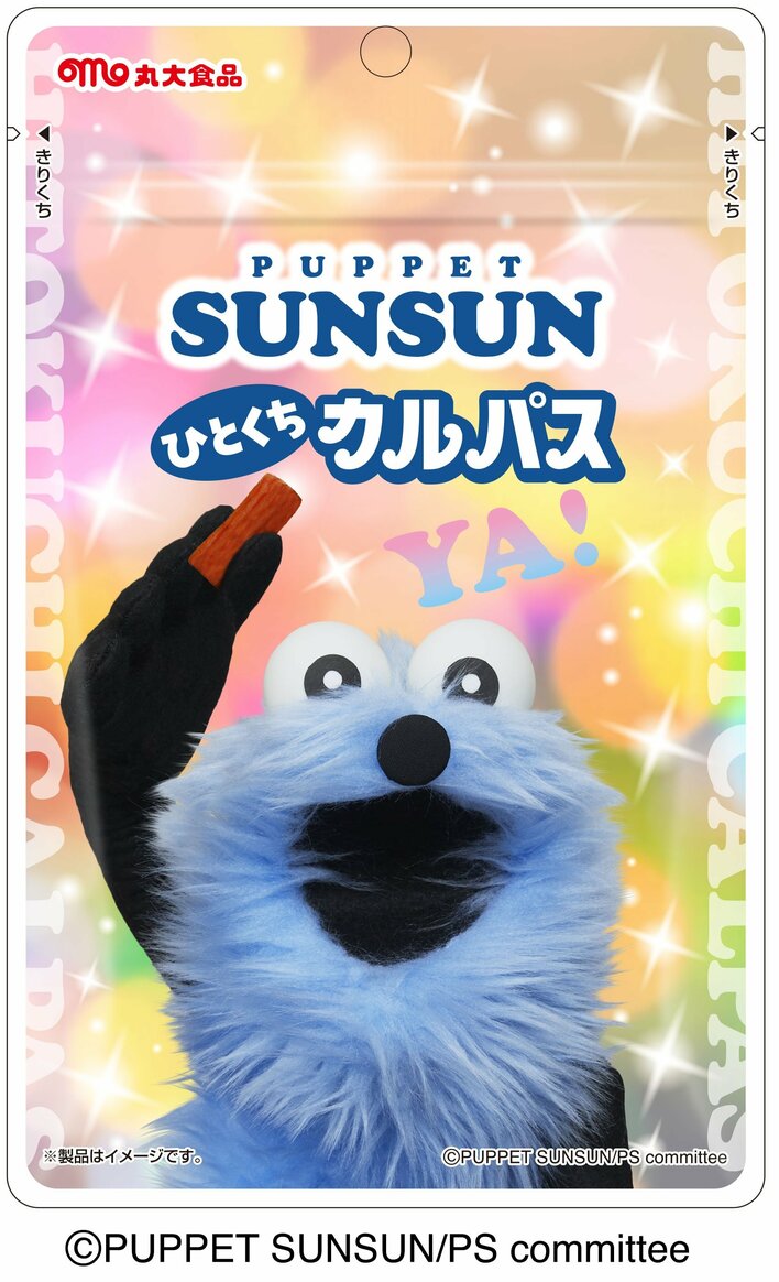大人気キャラクター『パペットスンスン』をパッケージにデザインした「ひとくちカルパス」が、丸大食品より4月上旬から全国のスーパーマーケットなどで発売されました。