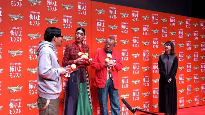 笑福亭鶴瓶さん、伊藤俊介さん(オズワルド)、アン ミカさんが9月27日、スマートフォンゲーム「『モンスターストライク』10周年新CM発表会」に出席しました。