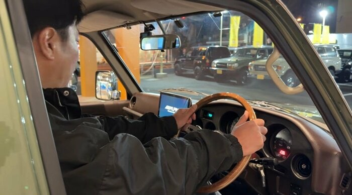 そんなこだわりが詰まった車に、尾形さんは「エンジンだけはいいよね?」と、エンジンをつけるために運転席へ。