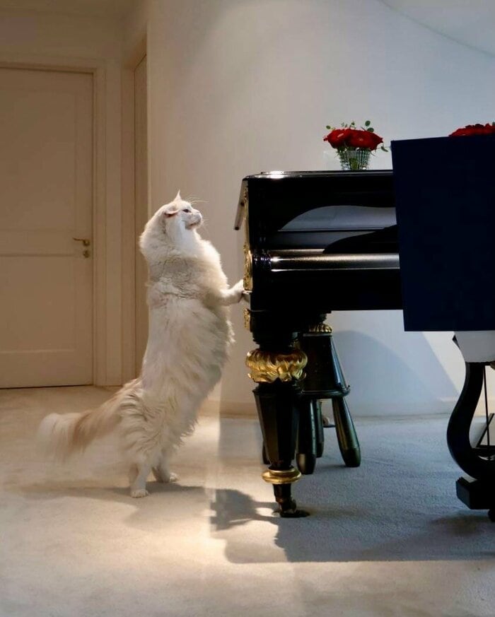自宅でしょうか、大きなグランドピアノに寄りかかりながら二足立ちをするブリュレくんの姿など、どれも愛らしいですね。