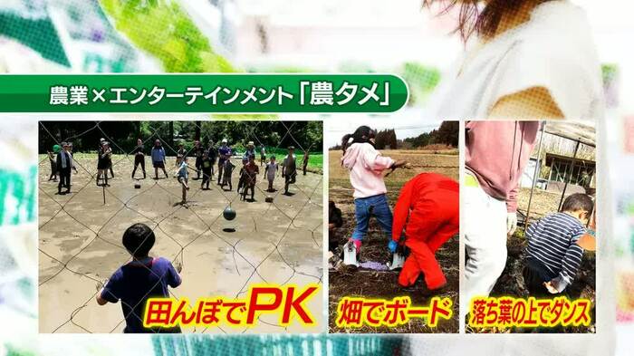 番組が取材したのは、子供が遊びながら農業のお手伝いをできる「農タメ!」。ここでは、畑の中をスノーボードに乗って走りながら麦踏みの手伝いをしたり、田んぼでPK対決をしながら代(しろ)かき作業をしたりすることができます。