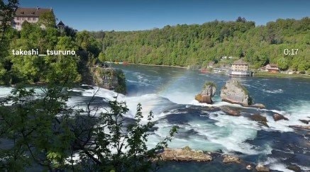 まずは、ヨーロッパ最大の滝といわれる「ライン滝」が映し出されます。水流の勢いにより、虹がかかっていて、大迫力の自然の景色につるのさんは「すごいわ」と声が漏れてしまいます。