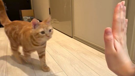 とある家に暮らす、当時生後4ヵ月の子猫が飼い主さんと“タッチ”する姿に、SNSからは「天才ですね!」「メロメロになりました」などと、193万回以上再生されるほど反響を呼んでいます。(2026年4月29日時点)