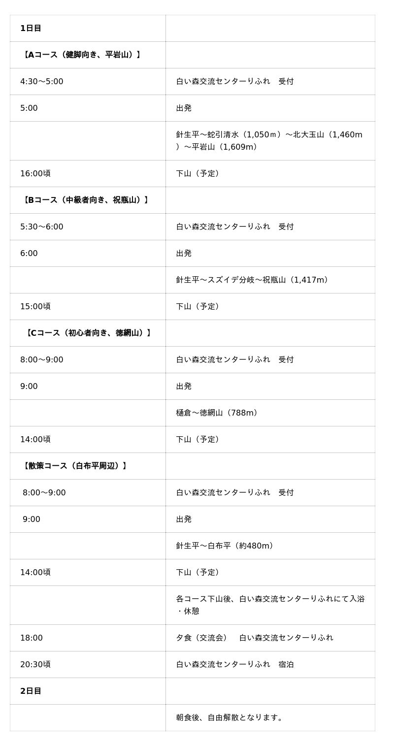 ●Aコース(健脚向き)針生平から北大玉山を経て平岩山(1,609m)を目指す本格ルート。
