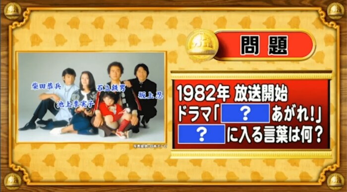 最後は、名作ドラマの問題。今から41年前の1982年に放送が開始された、石立鉄男さん主演のドラマ『[?]あがれ!』。「?」に入る言葉は何でしょうか?