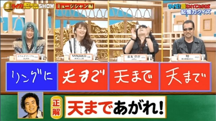 正解は、「天まで(あがれ!)」。MINAKOさん、長友さん、翔さんの3人が正解です。