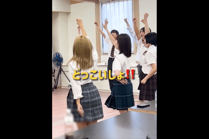 この動画では、撮影の合間に揃ってダンスの練習する生徒役キャストの姿と、山田さんがキレキレのダンスを見せる場面も。