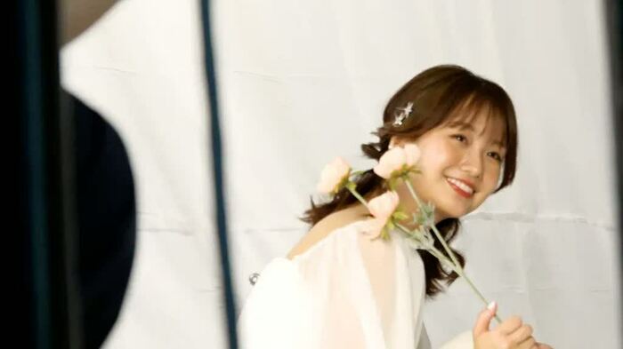 海老原さんが思い描いている世界観や理想に少しでも近づきたいなという思いがありました。私たちアナウンサーは、映像のカメラの前に立つことは慣れていますが、スチール撮影には慣れていないので、「こういう風なポーズで、こういう風に思いっきり笑って欲しい」といった指示が的確だったので、ありがたかったです。