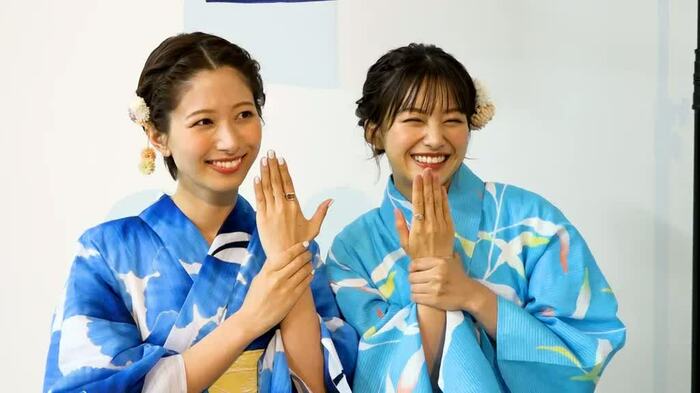 7月を飾るのは、海老原優香アナウンサーと原田葵アナウンサー。夏らしい爽やかな浴衣姿で登場しました。