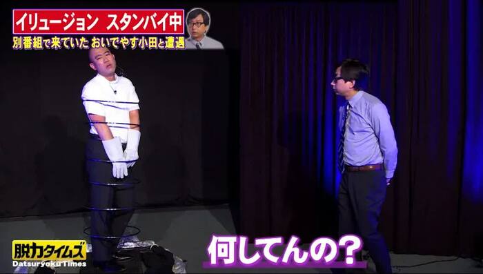 1つ目は、ナダルさんが固定された状態から一瞬で脱出する「脱出イリュージョン」に挑戦中のこと。
