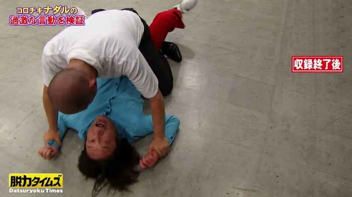 キャスターアリタがなだめるなか、またもや馬乗りになり、スタジオが修羅場と化しました。