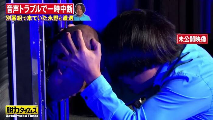 永野さんは、ナダルさんの頭を両手でつかみロックオン!さらに、「『脱力タイムズ』はさ…」と語り始めて、長期戦モードに。