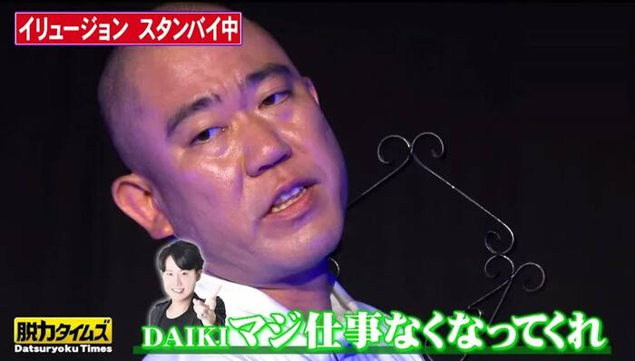 このときも、DAIKIさんが「ちょっと忘れ物」と言って、ぐるぐる巻きになったナダルさんを1人残してスタジオからいなくなると「DAIKI、マジ仕事なくなってくれ!」と、恐ろしい表情を見せました。