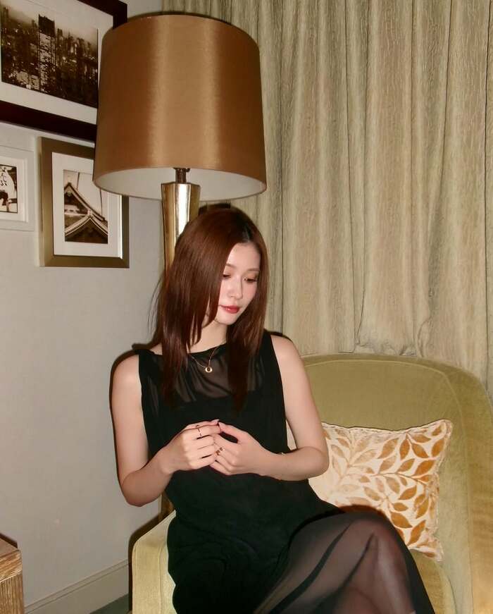 そして、ソファの肘掛けに軽く寄りかかり視線を落としたショットは、シースルードレスの内側から大胆にのぞくすらりとした美脚に思わず目を奪われます。上品さとさりげない色気を漂わせた姿は、大人の魅力にあふれていて、ファンにはたまりませんね。