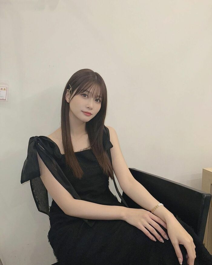 めるるさんは、肩ひも部分が大きなリボンになっている黒のノースリーブワンピース姿を公開。