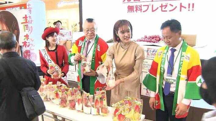 イベントでは、王林さんが、旬が到来した青森りんご1500個を無料で配布するPR活動を行いました。