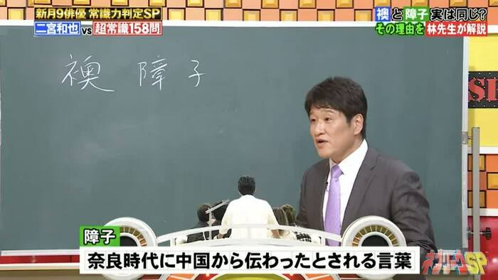 「ふすま」を漢字で書く問題では、林修先生が解説を加えてくれました。「ふすま」を漢字で書くと「襖」ですが、「襖」と「障子(しょうじ)」はもともと同じものだったというのです。