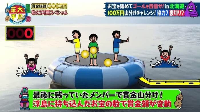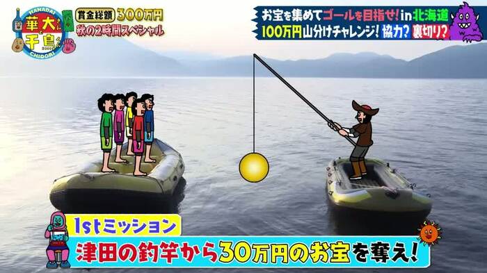 今回は、8月22日(火)放送の『火曜は全力!華大さんと千鳥くん 夏休み北海道2時間SP』から、盛り上がりすぎて入りきらなかった、もうひとつのチャレンジ「100万円山分け!ミリオンクルーズ」が登場。