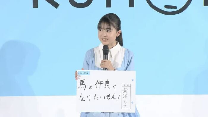 KUMONにちなみ「今〇〇したいもん」との質問に、新津さんは「馬と仲良くなりたいもん!」と回答。