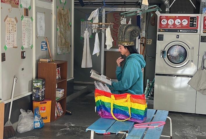 洗濯が終わるのを待つ間、雑誌を読む孔明。なぜここにいるのかは、第3話で明らかになるそう。