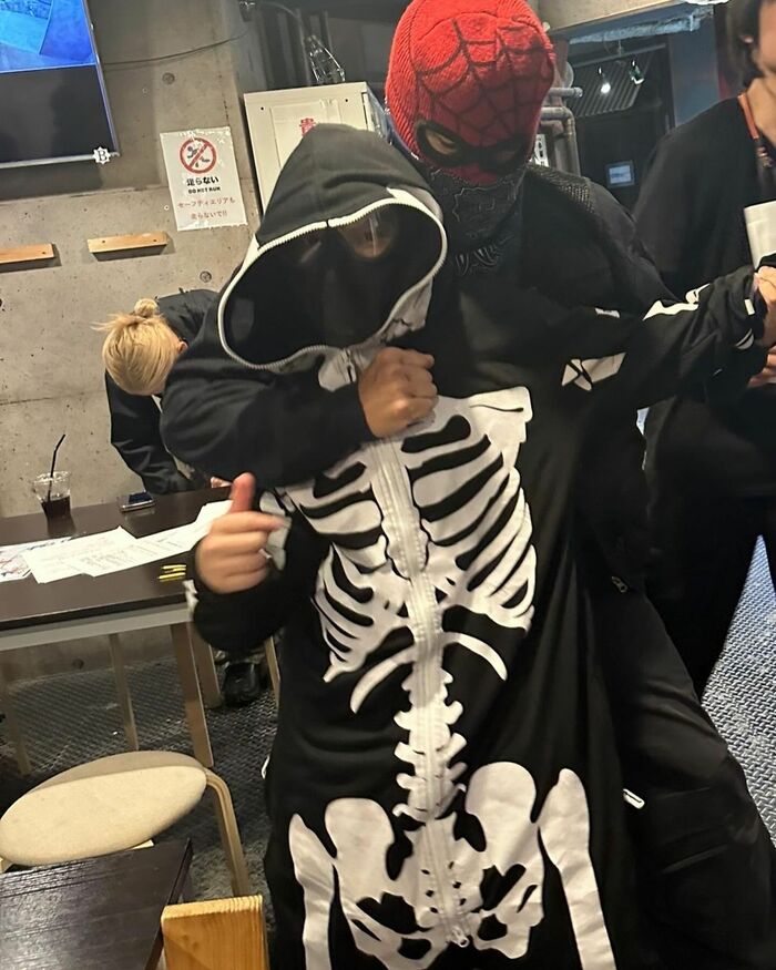 また、骨がデザインされた黒のパーカーを着用した息子さんと思われる写真には「目元がけんじさんそっくり!」と、ヘルメットからチラッと見える目元に注目が集まりました。
