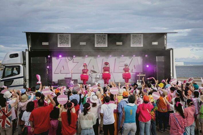 トラックステージの照明は“AZALEAカラー”のピンク色、ファンもピンク色を取り入れた衣装を身につけ、現場は華やかな雰囲気に包まれていました。