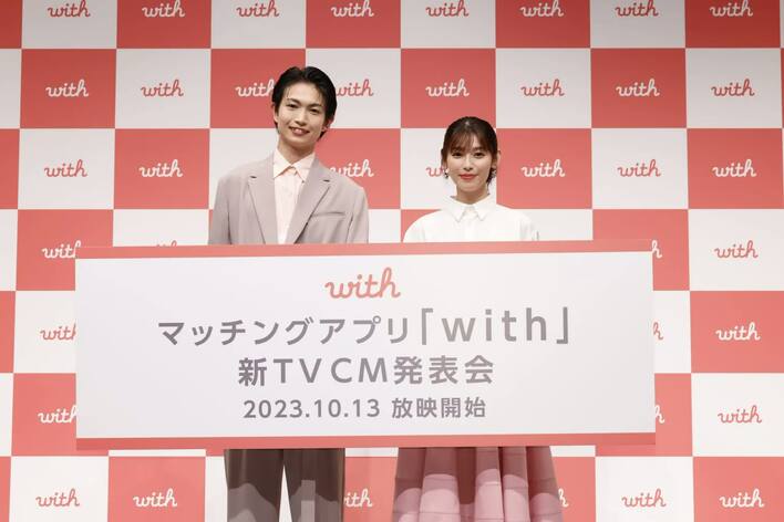 白石聖さんと綱啓永さんが10月12日、マッチングアプリ「with」新TVCM発表会に出席しました。