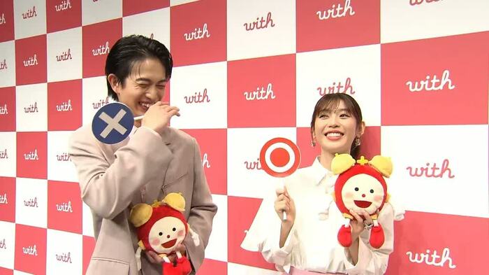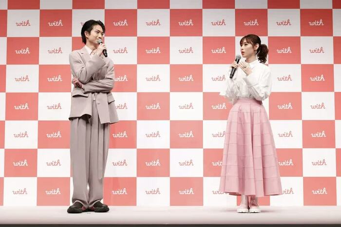 白石聖さんと綱啓永さんが10月12日、マッチングアプリ「with」新TVCM発表会に出席しました。