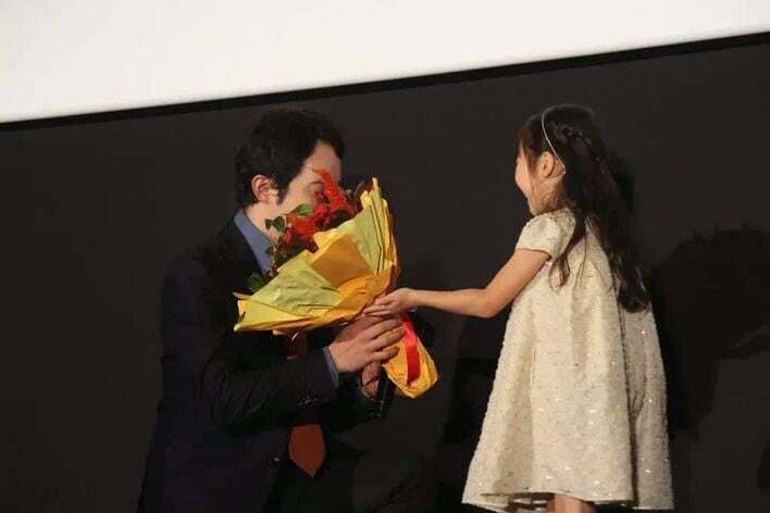 イベントでは、浅利さん演じる緒形恒之の娘役を務めた佐藤さんが登場。中島さんと浅利さんに花束を渡しました。