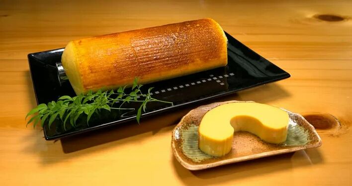 そのプリンのような滑らかな口あたりの秘密は、魚のすり身を入れないことだそうで、純粋に卵と糖蜜(砂糖、しょうゆ、水、塩)だけを使用し、3時間温めた専用の釜で1時間半かけてじっくり焼き上げることで完成する逸品とのこと。