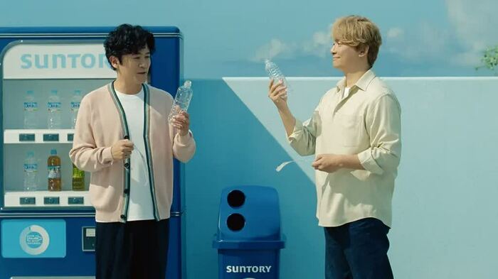 驚いた稲垣さんと香取さんが、リサイクルボックスへの投入の仕方を知っていくストーリーを通し、外でのより良い分別と、「ペットボトルで、また会おう。」という「ボトルtoボトル」水平リサイクルに向けたメッセージを発信するもの。