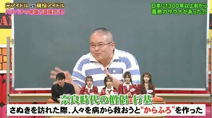 20〜40代で週1回以上サウナに行く人の割合を答える問題(正解は12%)では、地理担当の村瀬哲史先生が1300年の歴史がある「超高熱サウナ」について解説しました。