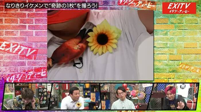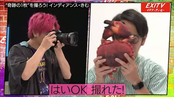 番組後半では、「“奇跡の1枚”を撮ろう!」コーナーを展開。2021年に「TOKYO GIRLS COLLECTION」に出演経験もあるインディアンスは、「EXITと一緒に写真を撮って写真集を出したい」と目を輝かせます。