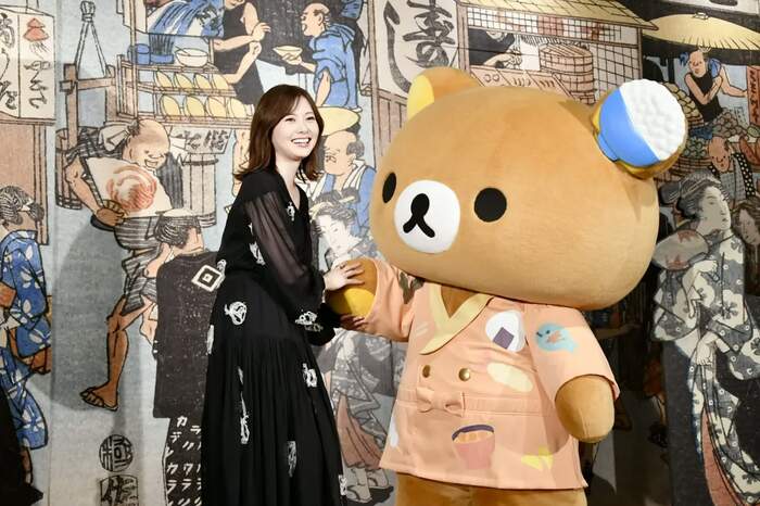 和食をイメージして作られた、リラックマの展覧会オリジナル衣装に触れ、「今回のために衣装を作ったと聞いたので、大事な機会に立ち会うことができてうれしいです」と笑みを浮かべました。