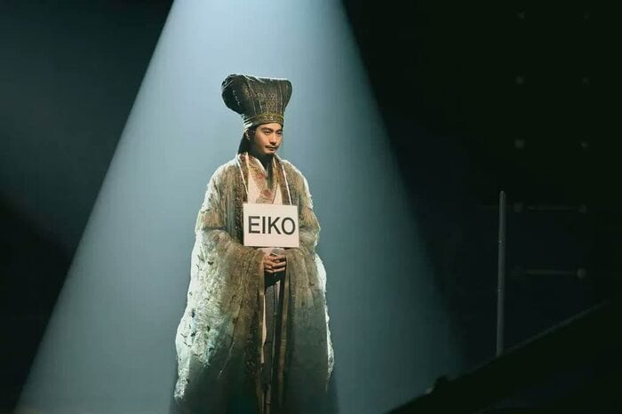 向井さんは「EIKO」と書かれた札を首にかけて、スタンドイン。