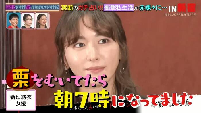 新垣さんは、生活リズムが夜型だそうで、「休みの日が続くと昼夜逆転する。朝まで音楽を聴いたり、家族や友だちと話したり」と告白。最近は「ローファイHIPHOP」というジャンルの音楽をよく聴く、「栗をむいてたら朝7時になってました」などと明かし、稲垣さんを驚かせました。