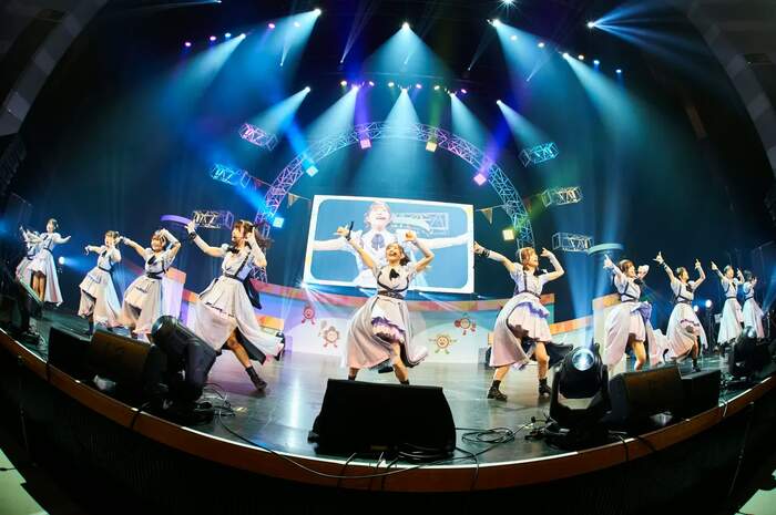 1曲目は「Jump Into the New World」。11人となってから初の全員曲です。会場は、ペンライトの光で輝き、観客もひとつになってジャンプ。伊達さゆりさんが「きょうは、思いきり楽しんでいきますよー!!」と叫ぶと、客席からは大きな歓声がわき上がりました。