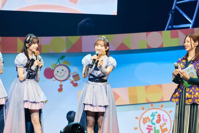 三宅アナと小山内アナがステージに登場し、三宅アナは観客のみなさんのことも絶賛。「あなたたちの対応力がすごい!『うりゃ』『おい』が出るなんて!はまったね!」と、アイドルファンならではの声援に感激しました。