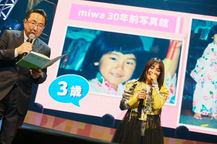 そして、「30周年フェス」恒例となった、miwaさんの30年前の写真がモニターに映し出されました。