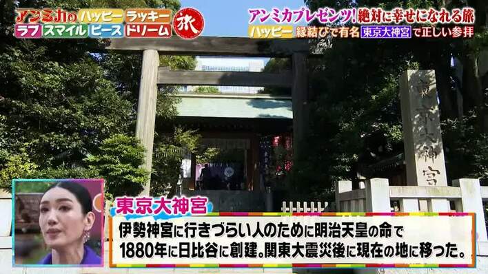 アン ミカさんが「みんなが“ハッピー”になれる、神様に一番近づける場所」として紹介したのは、東京都・千代田区にある「東京大神宮」。