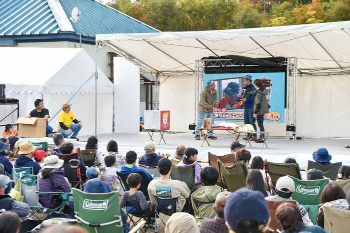 番組では見られない、スタッフが料理の準備をする“キッチン”を含めた「『西村キャンプ場』完全再現ブース」、過去の放送で食材を譲ってくださった“生産者さん”たちの産品を購入できる「生産者さんマーケット」、番組内で西村さんが背負っている木の看板を、自分の名前で作ることができる「オリジナル看板つくりワークショップ」など、番組ならではの企画を実施。