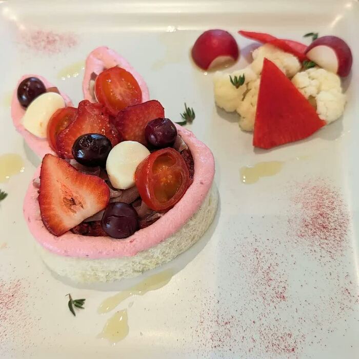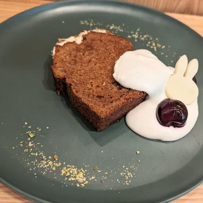 デザートメニューは、ミッフィーのホワイトチョコが添えられた「キャロットケーキ」(1390円)、ミッフィーの顔をしたチーズタルトに季節のフルーツが添えられた「きせつのタルト」(1490円)の2種類。