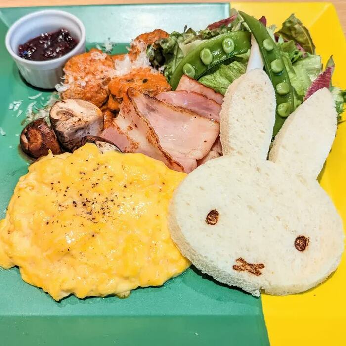 さらに、朝8時30分から10時30分の時間限定で、モーニングメニュー「スクランブルエッグプレート」(1790円)が注文できます。ミッフィーの顔型をした食パン、サラダ、スクランブルエッグ、ベーコン、ミートボール、マッシュルームソテーと、内容盛りだくさん。朝のパワーチャージにはぴったりです。