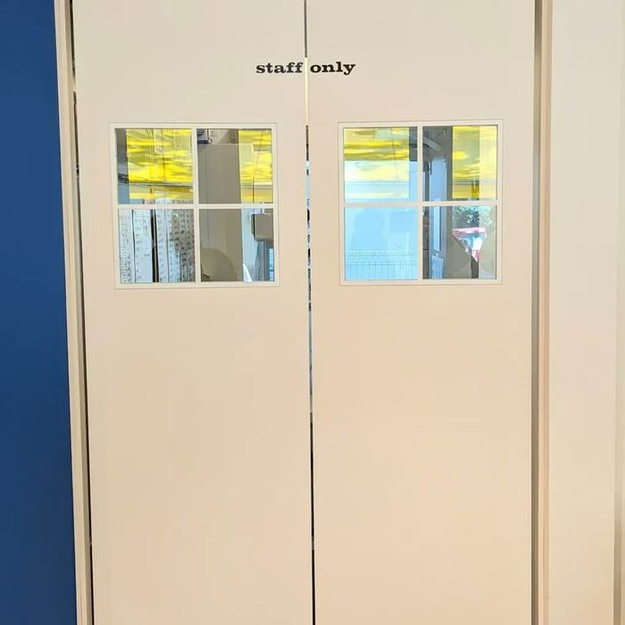 店内は、外観同様のポップさと、木のぬくもりが感じられるつくり。カウンターでは、店員さんがドリンクなどを作るカウンターがドンと設けられ、さらにその奥にある小窓のような隙間からキッチンも覗けます。