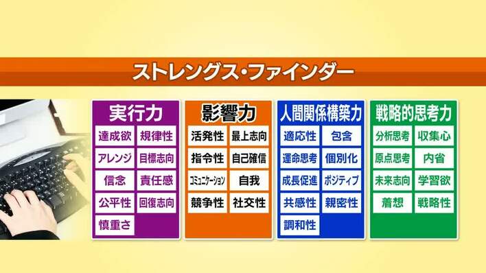 「ストレングス・ファインダー」は、企業のチームビルディングや学校の教師の研修、就職・転職活動などに活用されているそうで、番組では取り入れている企業や学校を取材しました。