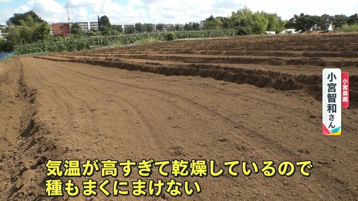 9月に入ったら本来ならホウレンソウ、小松菜っていう葉物野菜の種をまくんですけども、気温が高すぎて、あと乾燥しているので種もまくにまけない。