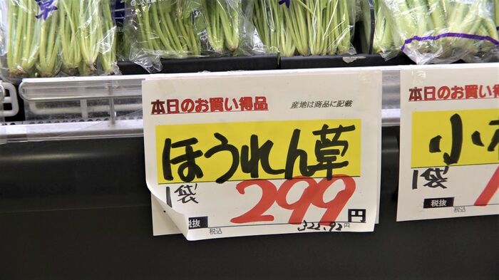やはり128円~158円ぐらいの価格で販売したいのが、ホウレンソウの1袋の単価です。小松菜も100円ぐらいで売れると大変ありがたいんですけれども、やはり値段が上がってきている状況です。