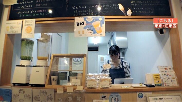東京・江東区にある、フルーツや野菜を使ったメニューが人気の無添加フルーツジュース専門店「こちる」。