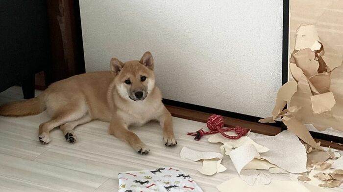 ちなみに、飼い主が帰って来た時は、やりきって満足したのか、ふう太くんは寝ていたそうです。